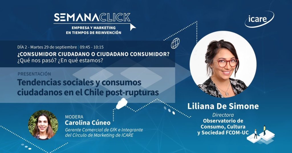 Revisa la participación que tuvo nuestra directora Liliana de Simone en el podcast de ODECU (Organización de Consumidores y Usuarios). En esta oportunidad Liliana conversó con Carlos Montoya acerca de los nuevos cambios en tendencias del consumidor a casi un año de la llegada de la pandemia a Chile. Puedes conocer las tendencias estudiadas en […]